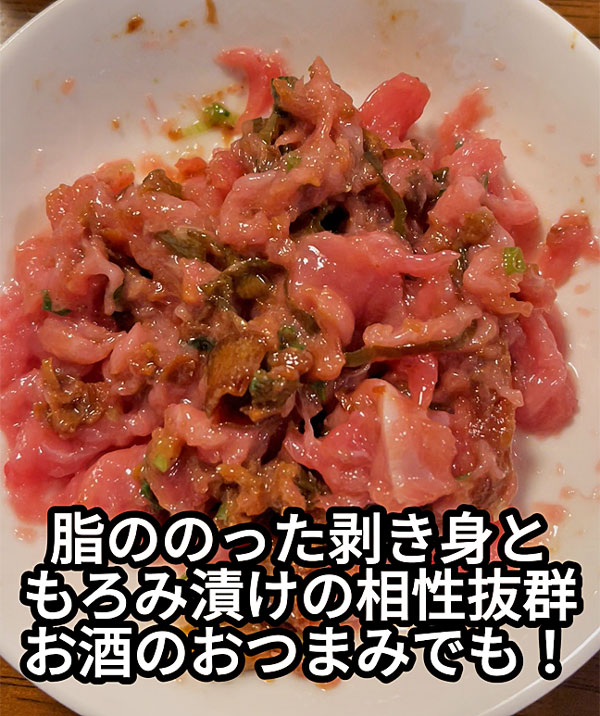 マグロの剥き身に、たっぷり薬味入りもろみ漬けを合わせました。