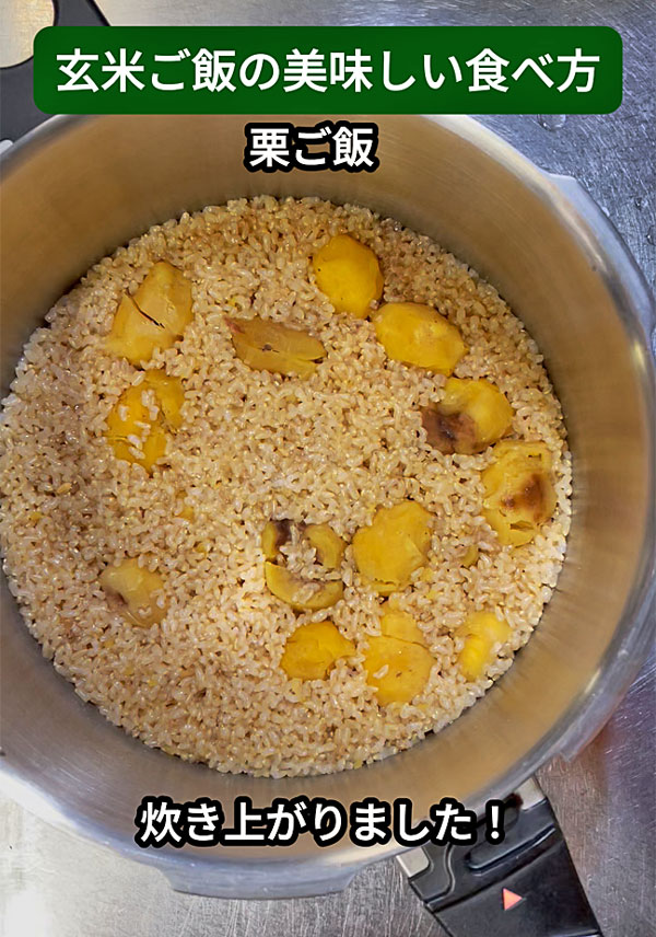 ミルキークイーン玄米で栗ご飯を作ってみました。