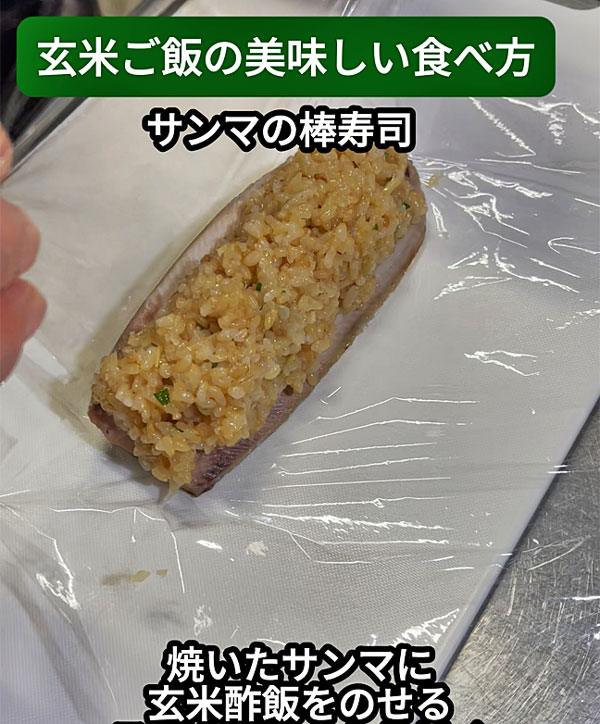 ●玄米ご飯の美味しい食べ方!サンマの棒寿司