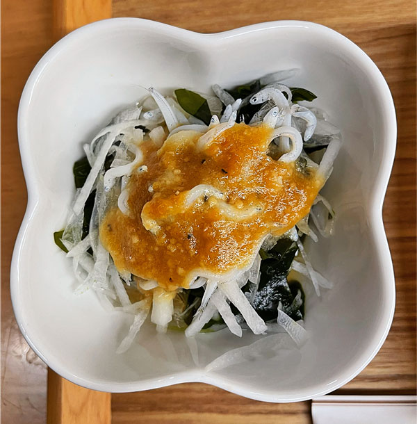 豆腐・お刺身わかめ・しらす・新タマネギ・大根のサラダ